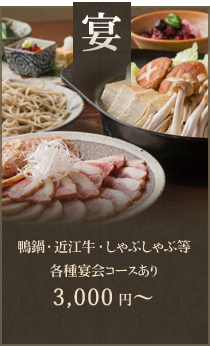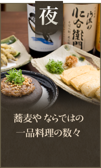 夜は蕎麦屋ならではの一品料理をはじめ「鴨すき鍋」や「牛すじ、豚しゃぶ」など鍋のコース!