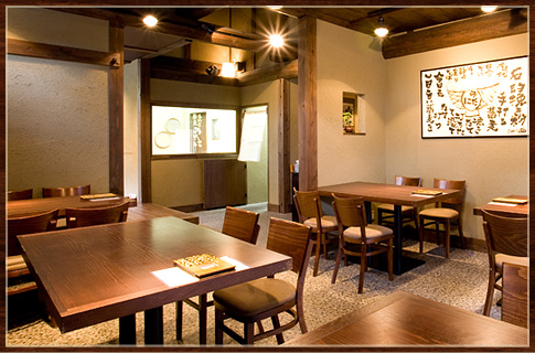 天井の高い店内は、木と土壁の落ちついた古民家風!